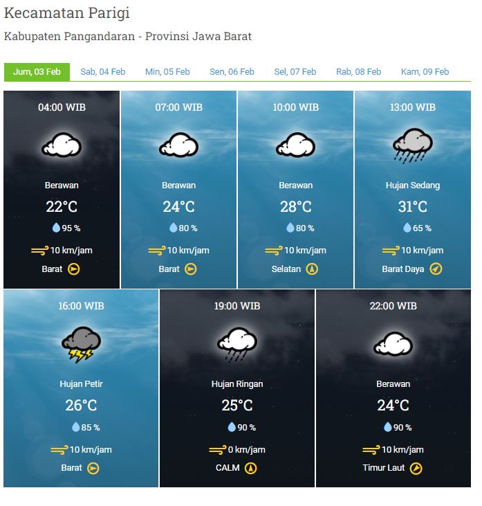 Laporan Harian & Prakiraan Cuaca Kabupaten Pangandaran – Jumat , 03 Februari 2023