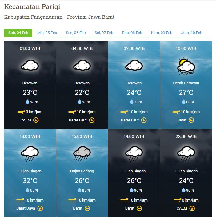 Laporan Harian & Prakiraan Cuaca Kabupaten Pangandaran – Sabtu, 04 Februari 2023