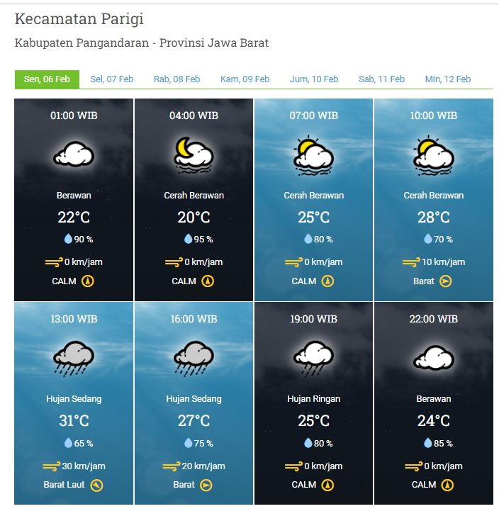 Laporan Harian & Prakiraan Cuaca Kabupaten Pangandaran – Senin, 06 Februari 2023