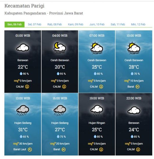 Kecepatan Angin : 0 – 10 km/jam