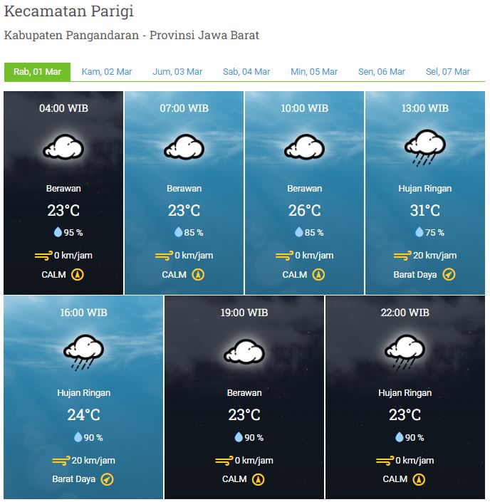 Laporan Harian & Prakiraan Cuaca Kabupaten Pangandaran – 1 Maret 2023