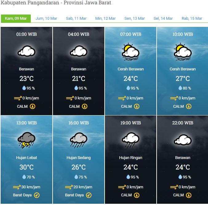 Laporan Harian & Prakiraan Cuaca Kabupaten Pangandaran – Kamis, 09 Maret 2023