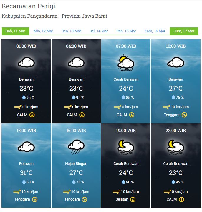 Laporan Harian & Prakiraan Cuaca Kabupaten Pangandaran – Sabtu, 11 Maret 2023