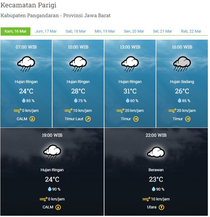 Laporan Harian & Prakiraan Cuaca Kabupaten Pangandaran – Kamis, 16 Maret 2023