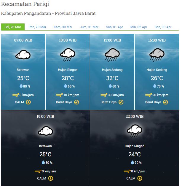 Laporan Harian & Prakiraan Cuaca Kabupaten Pangandaran – Selasa, 28 Maret 2023
