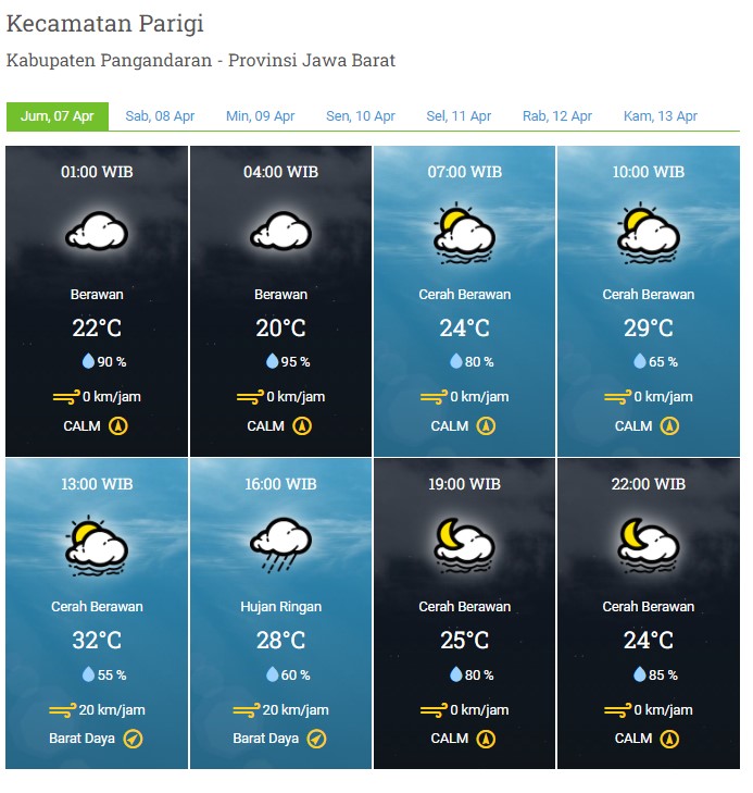 Laporan Harian & Prakiraan Cuaca Kabupaten Pangandaran – Jumat, 07 April 2023