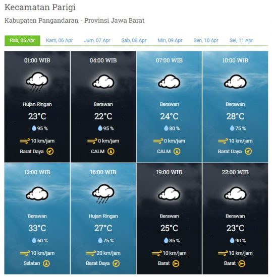 Siang : Berawan – Hujan Ringan