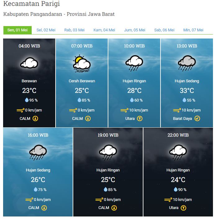 Laporan Harian & Prakiraan Cuaca Kabupaten Pangandaran – Senin, 1 Mei 2023