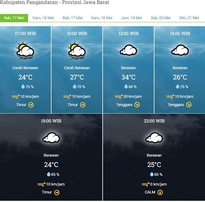 Laporan Harian & Prakiraan Cuaca Kabupaten Pangandaran – Rabu, 17 Mei 2023
