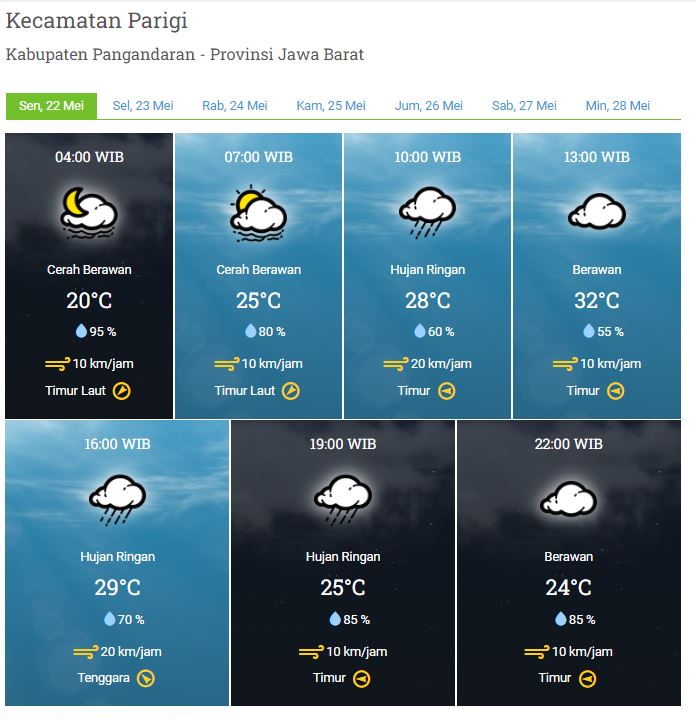 Laporan Harian & Prakiraan Cuaca Kabupaten Pangandaran – Senin, 22 Mei 2023
