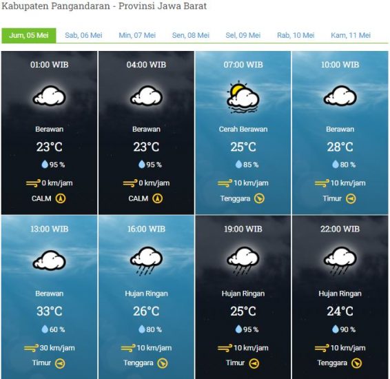 Laporan Harian & Prakiraan Cuaca Kabupaten Pangandaran – Jum’at, 05 Mei 2023