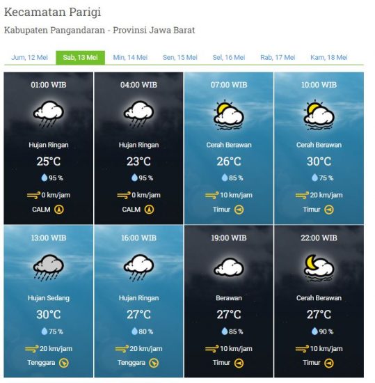 Laporan Harian & Prakiraan Cuaca Kabupaten Pangandaran – Jumat, 13 Mei 2023