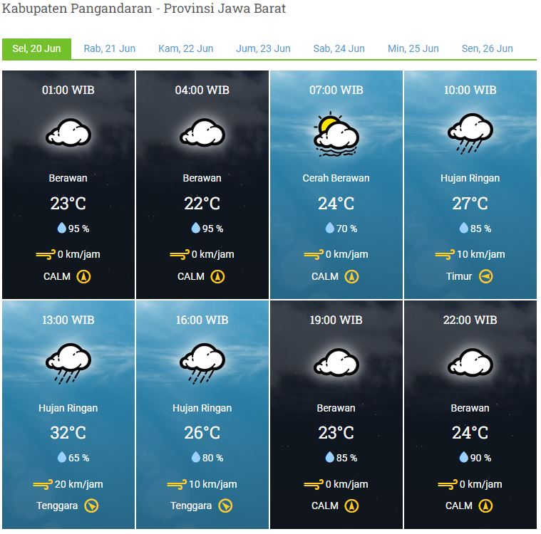 Laporan Harian & Prakiran Cuaca Kabupaten Pangandaran – Selasa, 20 Juni 2023