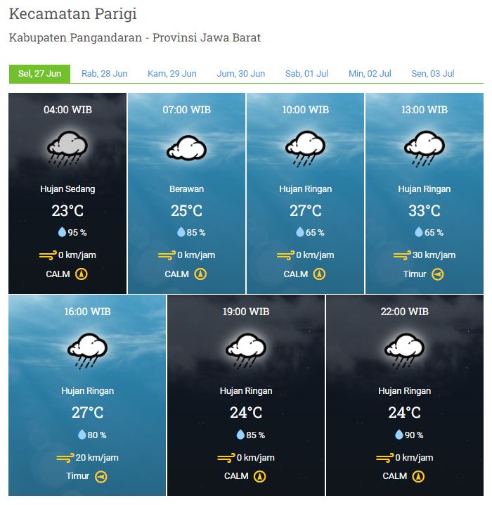 Laporan Harian & Prakiraan Cuaca Kabupaten Pangandaran – Selasa, 27 Juni 2023