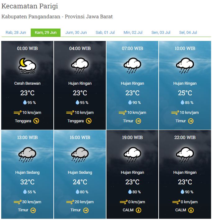 Laporan Harian & Prakiraan Cuaca Kabupaten Pangandaran – Kamis, 29 Juni 2023
