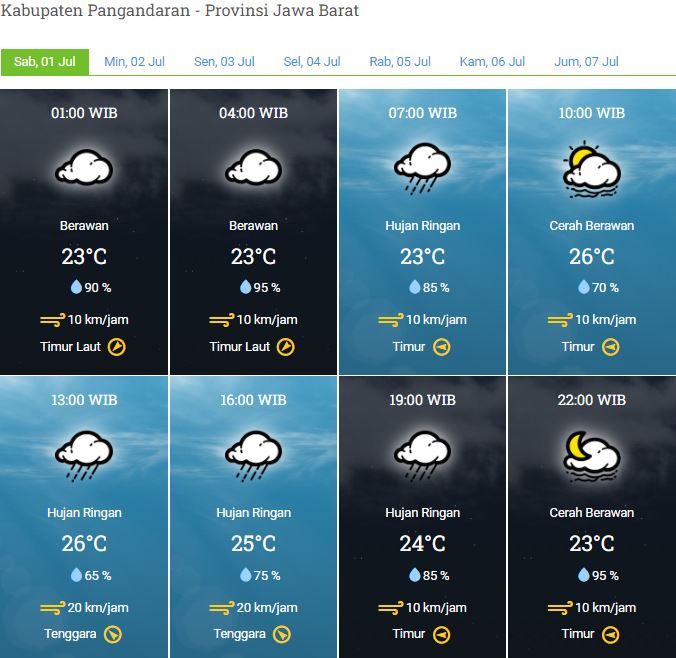 Laporan Harian & Prakiraan Cuaca Kabupaten Pangandaran – Sabtu, 01 Juni 2023