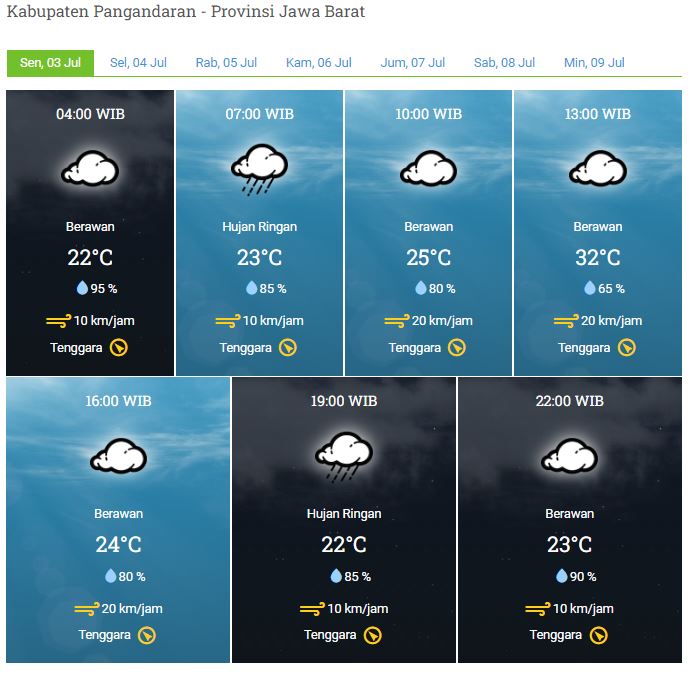 Laporan Harian & Prakiraan Cuaca Kabupaten Pangandaran – Senin, 03 Juli 2023