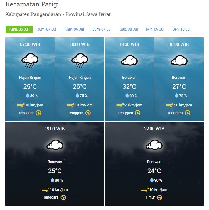 Laporan Harian & Prakiraan Cuaca Kabupaten Pangandaran – Kamis, 6 Juli 2023