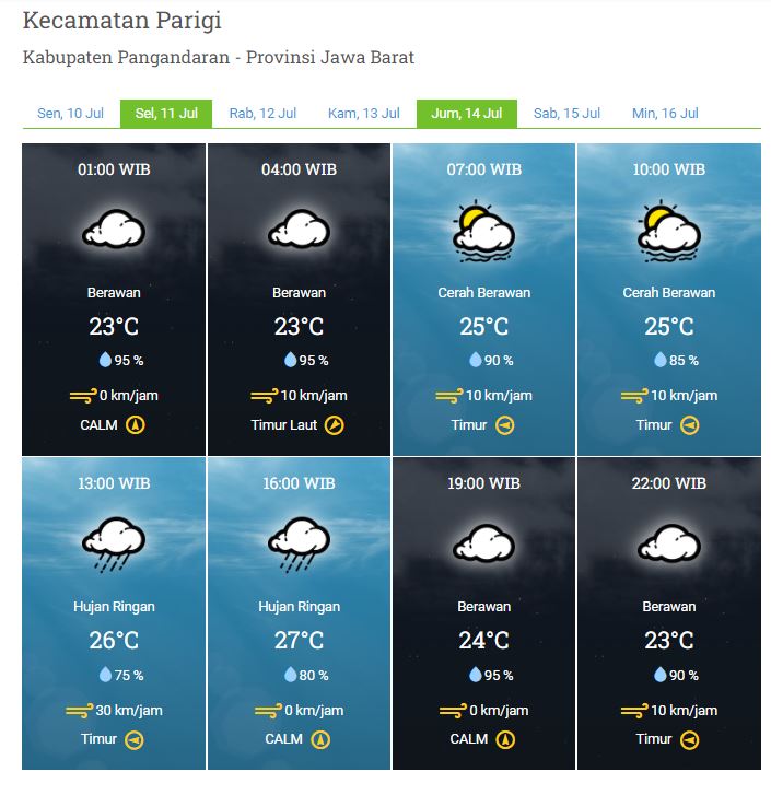 Laporan Harian & Prakiraan Cuaca Kabupaten Pangandaran – Selasa, 11 Juli 2023