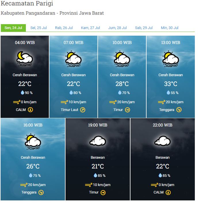 Laporan Harian & Prakiraan Cuaca Kabupaten Pangandaran – Senin, 24 Juli 2023