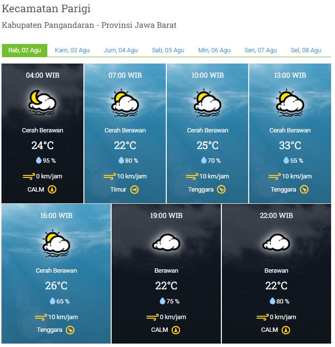 Laporan Harian & Prakiraan Cuaca Kabupaten Pangandaran – Rabu, 02 Agustus 2023