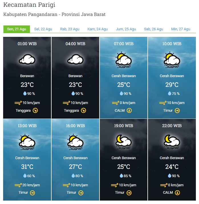 Laporan Harian & Prakiraan Cuaca Kabupaten Pangandaran – Senin, 21 Agustus 2023