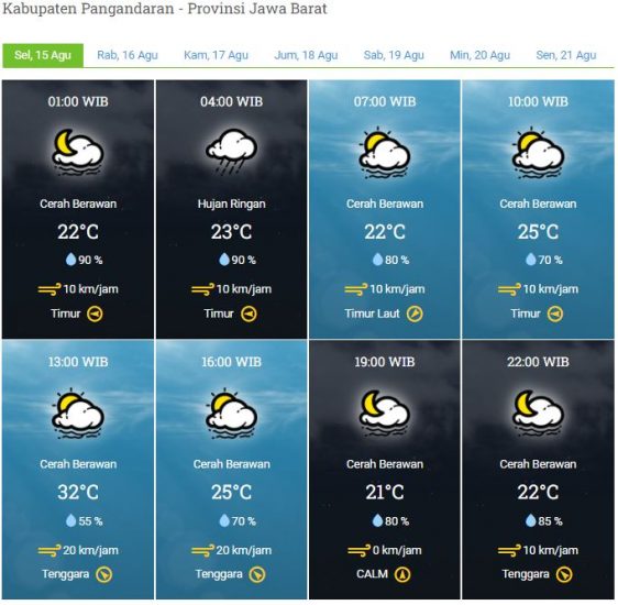 Kecepatan Angin : 0 – 20 km/jam