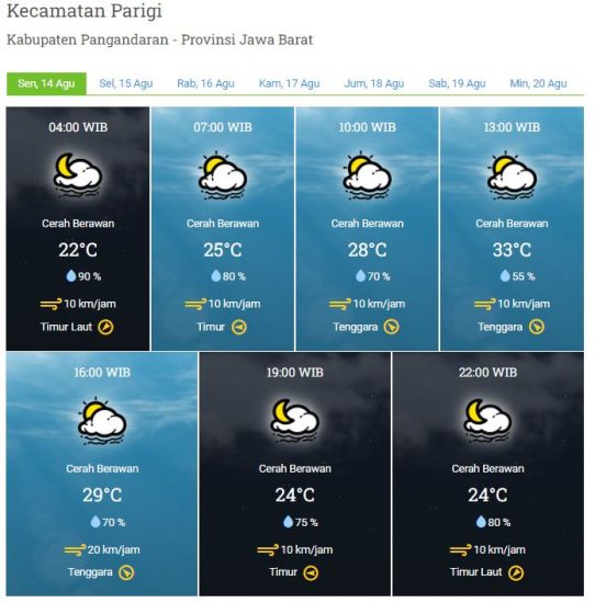 Laporan Harian & Prakiraan Cuaca Kabupaten Pangandaran – Senin, 14 Agustus 2023