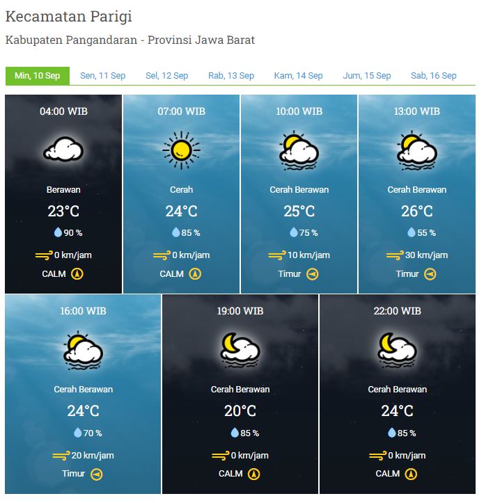 Laporan Harian & Prakiraan Cuaca Kabupaten Pangandaran – Minggu, 10 September 2023