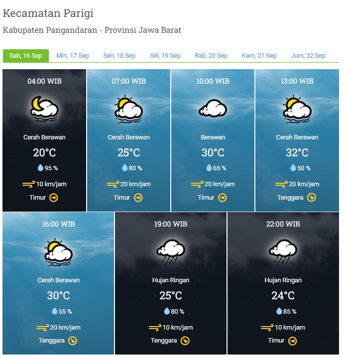 Laporan Harian & Prakiraan Cuaca Kabupaten Pangandaran – Sabtu, 16 September 2023