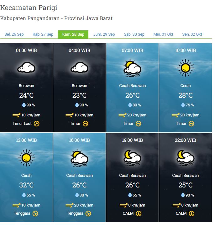 Laporan Harian & Prakiraan Cuaca Kabupaten Pangandaran – Kamis, 28 September 2023