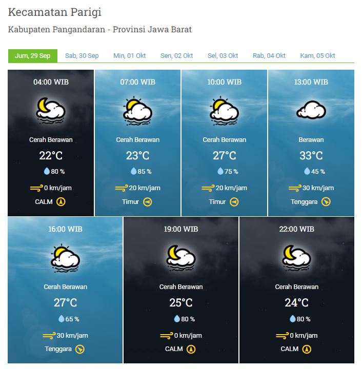 Laporan Harian & Prakiraan Cuaca Kabupaten Pangandaran – Jum’at, 29 September 2023
