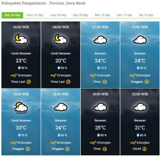 Laporan Harian & Prakiraan Cuaca Kabupaten Pangandaran – Rabu, 06 September 2023