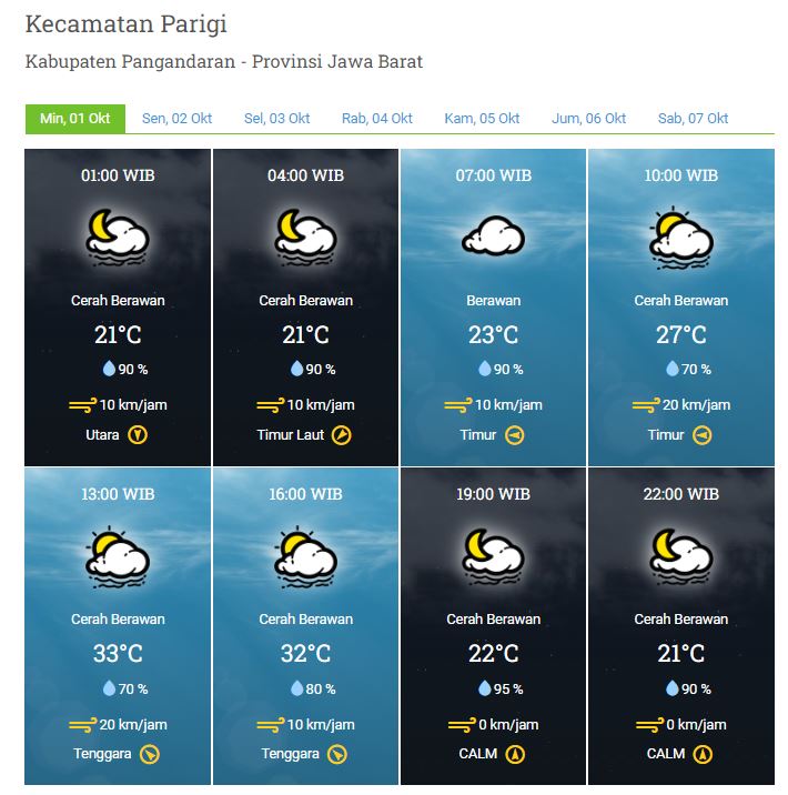 Laporan Harian & Prakiraan Cuaca Kabupaten Pangandaran – Minggu, 01 Oktober 2023