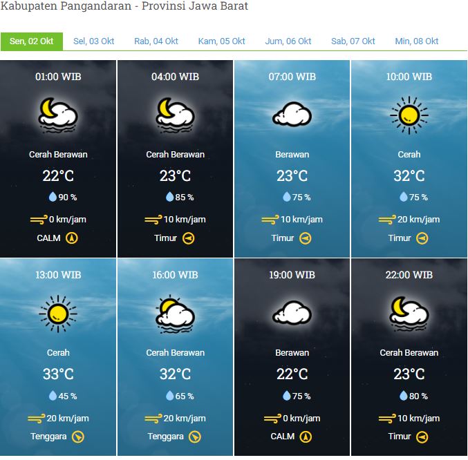 Laporan Harian & Prakiraan Cuaca Kabupaten Pangandaran – Senin, 02 Oktober 2023
