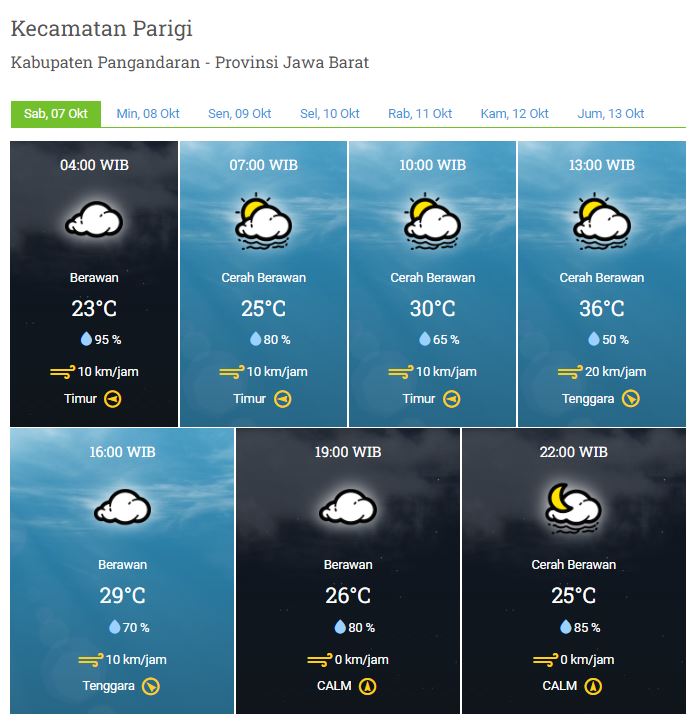 Laporan Harian & Prakiraan Cuaca Kabupaten Pangandaran – Sabtu, 07 Oktober 2029