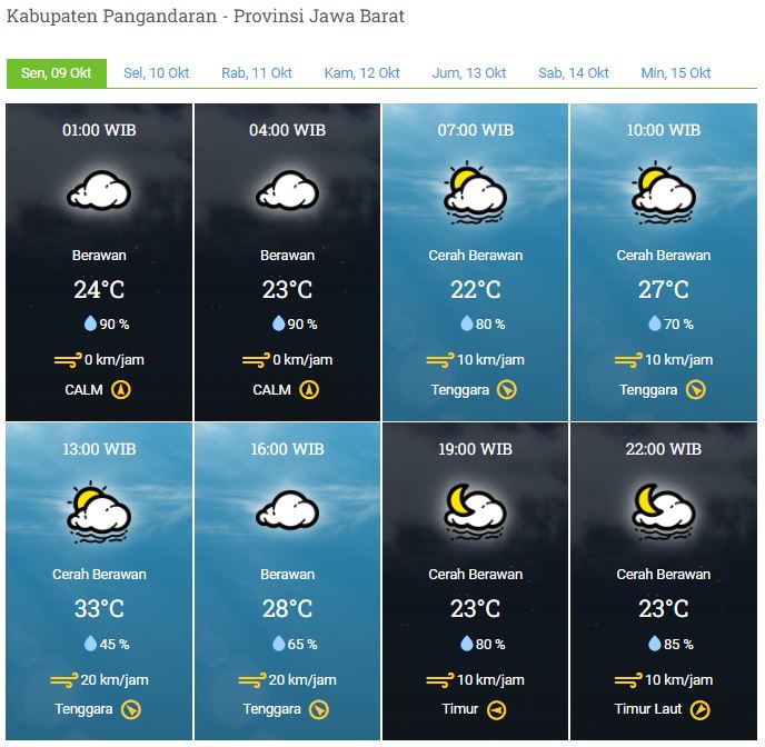 Laporan Harian & Prakiraan Cuaca Kabupaten Pangandaran – Senin, 09 Oktober 2023