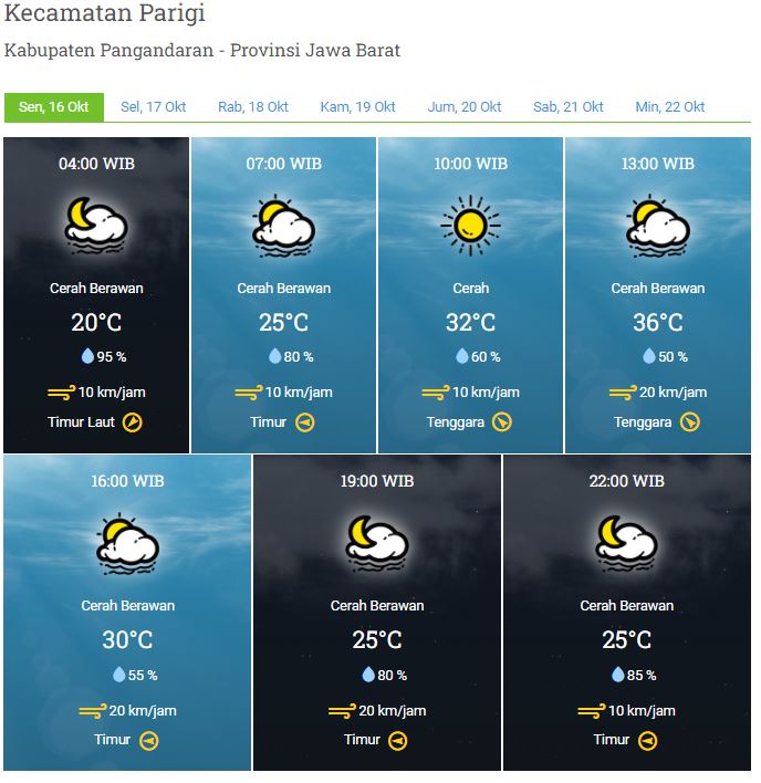 Laporan Harian & Prakiraan Cuaca Kabupaten Pangandaran – Senin, 16 Oktober 2023