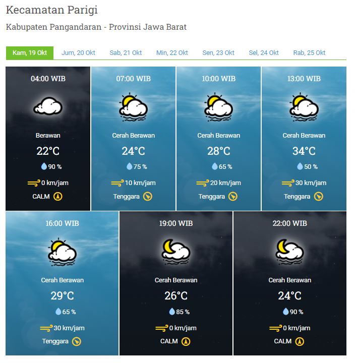 Laporan Harian & Prakiraan Cuaca Kabupaten Pangandaran – Kamis, 19 Oktober 2023