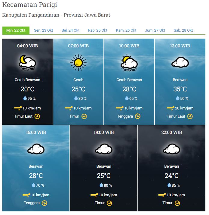 Laporan Harian & Prakiraan Cuaca Kabupaten Pangandaran – Minggu, 22 Oktober 2023