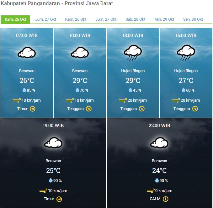 Laporan Harian & Prakiraan Cuaca Kabupaten Pangandaran – Kamis, 26 Oktober 2023