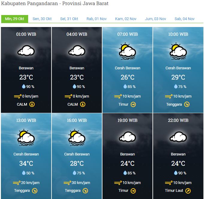 Laporan Harian & Prakiraan Cuaca Kabupaten Pangandaran – Minggu, 29 Oktober 2023