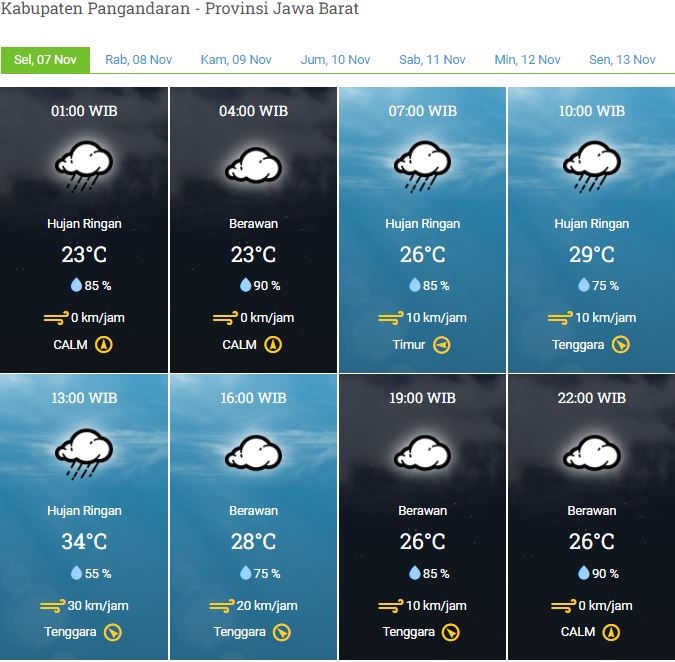 Laporan Harian & Prakiraan Cuaca Kabupaten Pangandaran – Selasa, 07 November 2023