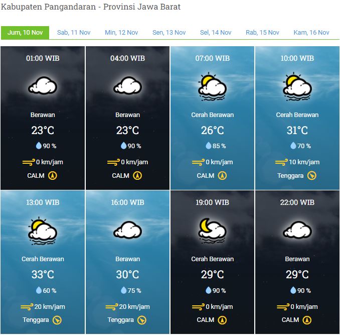 Laporan Harian & Prakiraan Cuaca Kabupaten Pangandaran – Jum’at, 10 November 2023
