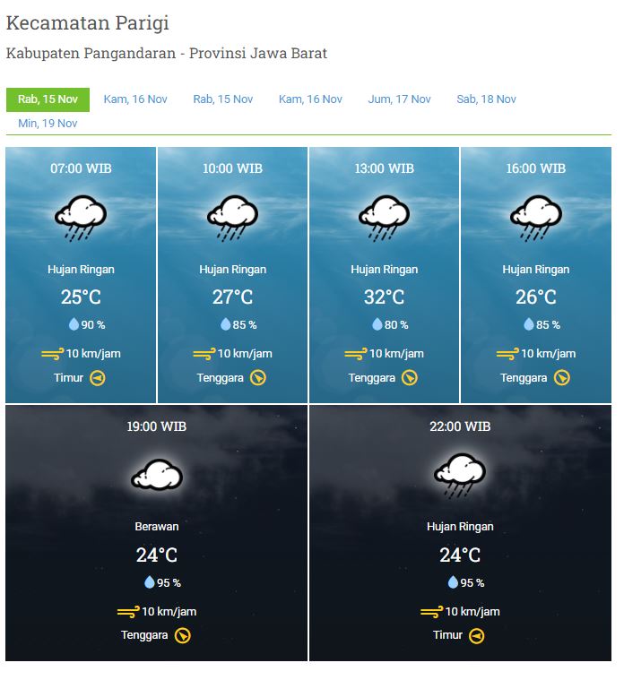 Laporan Harian & Prakiraan Cuaca Kabupaten Pangandaran – Rabu, 15 November 2023