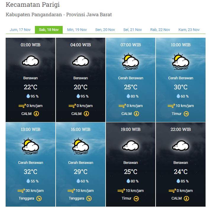 Laporan Harian & Prakiraan Cuaca Kabupaten Pangandaran – Sabtu, 18 November 2023