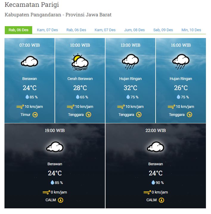 Laporan Harian & Prakiraan Cuaca Kabupaten Pangandaran – Rabu, 06 Desember 2023