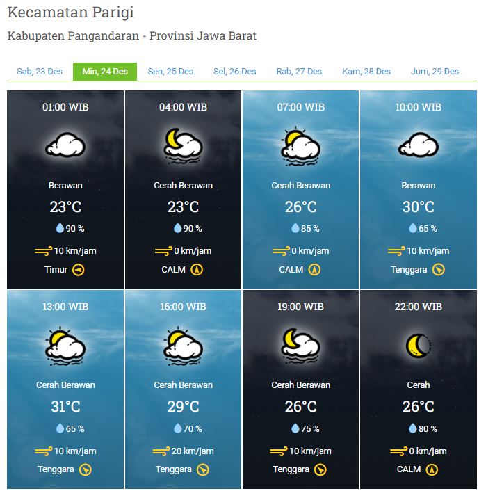 Laporan Harian & Prakiraan Cuaca Kabupaten Pangandaran – Minggu, 24 Desember 2023