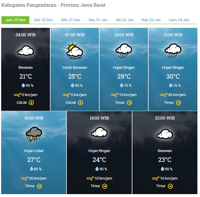 Laporan Harian & Prakiraan Cuaca Kabupaten Pangandaran – Jum’at, 29 Desember 2023