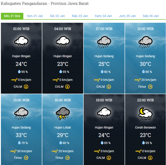 Laporan Harian & Prakiraan Cuaca Kabupaten Pangandaran – Minggu, 31 Desember 2023